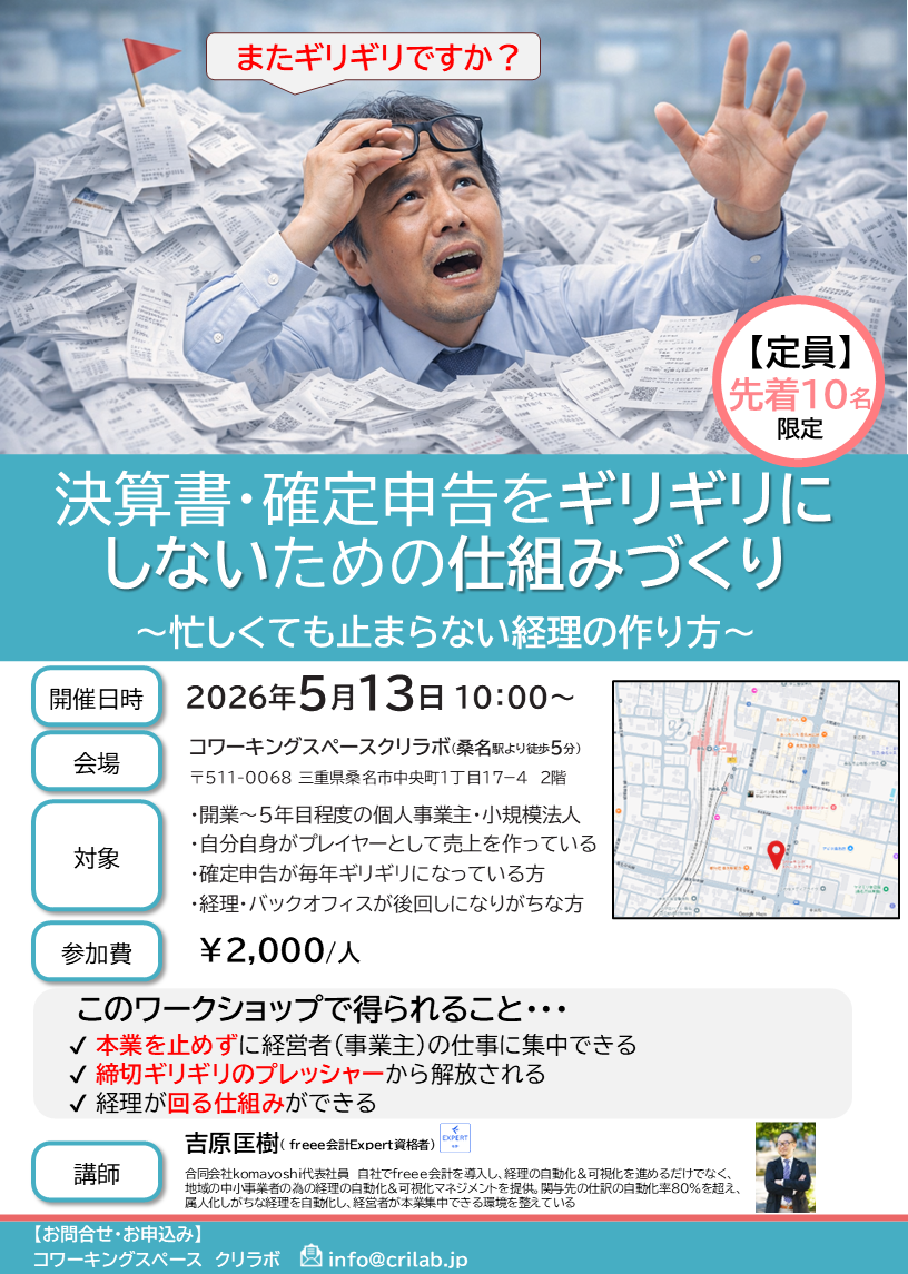 「決算書・確定申告をギリギリにしないための仕組みづくり」ワークショップのご案内